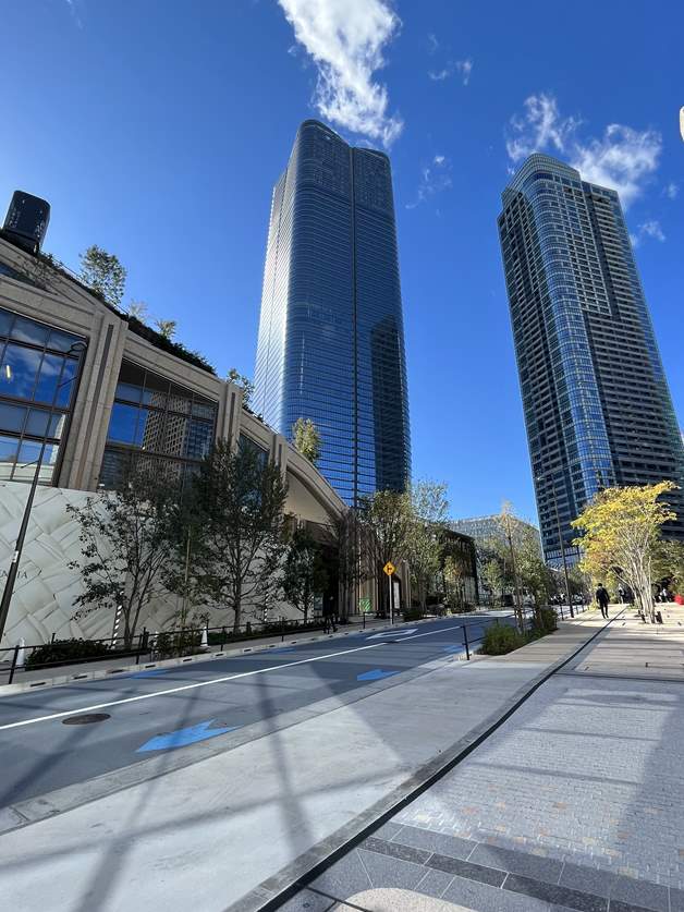 The newly opened Azabudai Hills (Minato City, Azabudai 1-chome) debuted on November 24, 2023, as a modern compact city with offices, residences, hotels, museums, schools, and hospitals. It has quickly become a bustling new landmark. At its center stands the main structure, Mori JP Tower. At 325 meters with 64 floors above ground and five below, it surpasses Osaka’s Abeno Harukas as Japan’s tallest building.