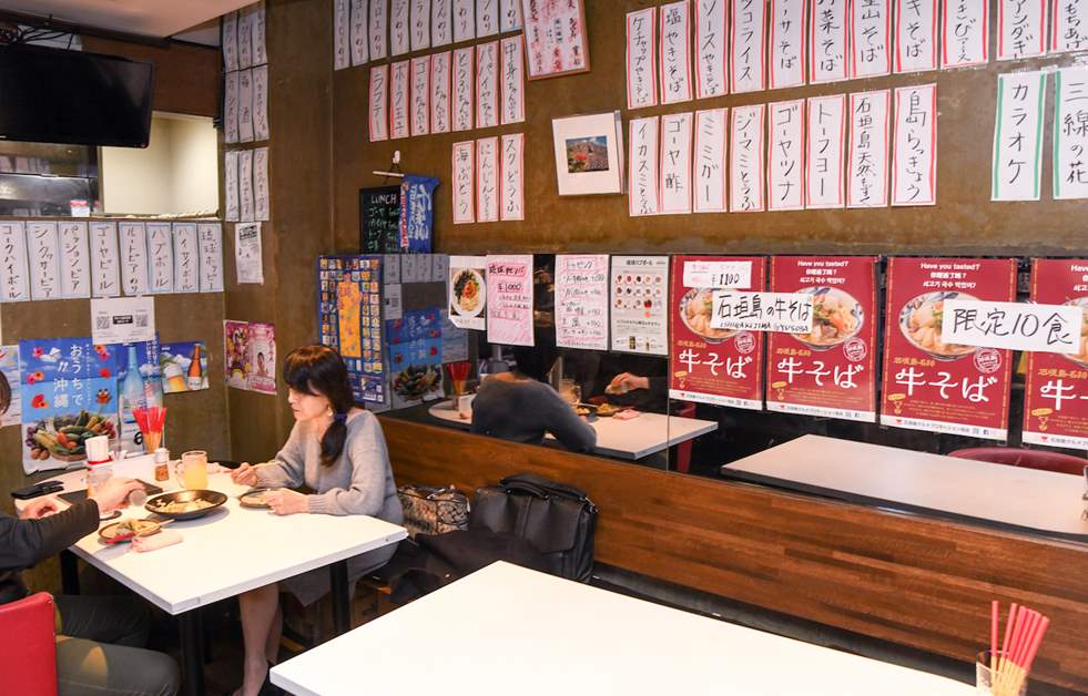 This long-standing Okinawan restaurant was founded 23 years ago. It used to be in Roppongi, but they moved their main branch to their second store in Nogizaka last year. The walls of the restaurant are covered with the names of authentic Okinawan dishes on their menu, such as soki soba, rafute, and shima rakkyo. There is also awamori liquor from each area of Okinawa lined up behind the counter where the proprietress stands.