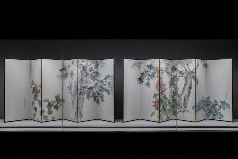 "Folding Screen Painting of Flowers and Plants" bu Hokkai Takashima, 1913, Sen-Oku Hakukokan Museum Tokyo