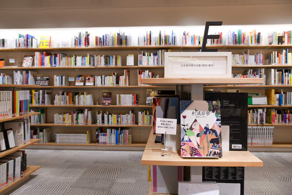 The library is located one floor above the exhibition space. The stylish and open space is impressive, as it is the only spot related to the history of advertising. On the main bookshelves are collections of award-winning works from domestic and international advertising awards, specialized books such as the "Copy Yearbooks" of past generations, and corporate histories of companies. There is also a section related to the current exhibition.