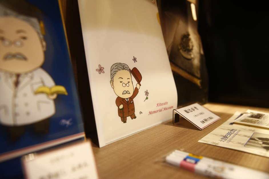 There is also a goods corner in the exhibition room. In addition to books, postcards, sticky notes, and clear files with the mascot character "Shiba-chan" on them are also available. The cute "Shiba-chan" was created by students of Kitasato University.