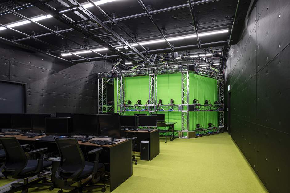 The lab space is equipped with a state-of-the-art "volumetric video studio", which is capable of recording, editing, and distributing 3D video with freely changeable viewpoints.