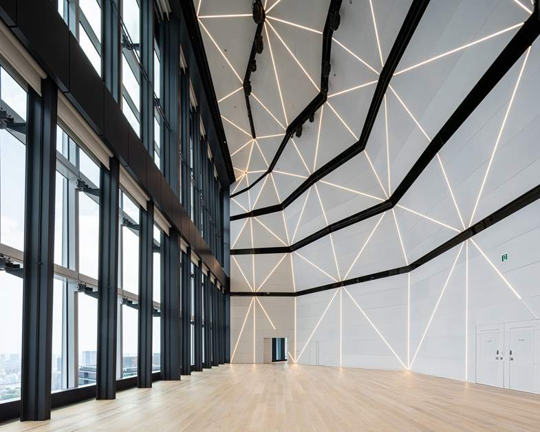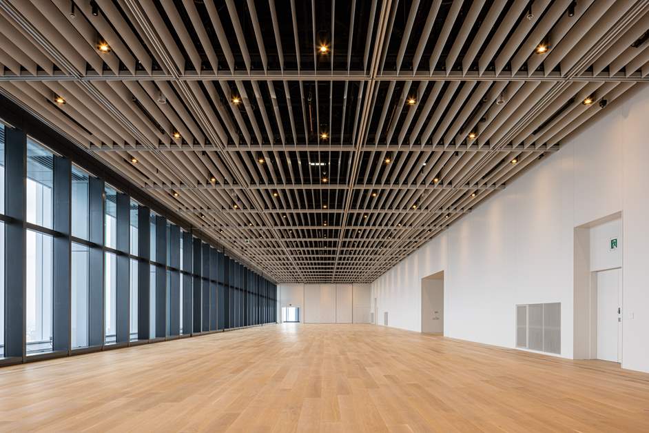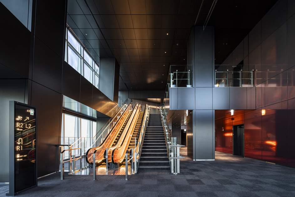 From the Arrival Hall—adjacent to each gallery and the all-day dining facility—visitors can take the elevator or escalator to the 46th floor.