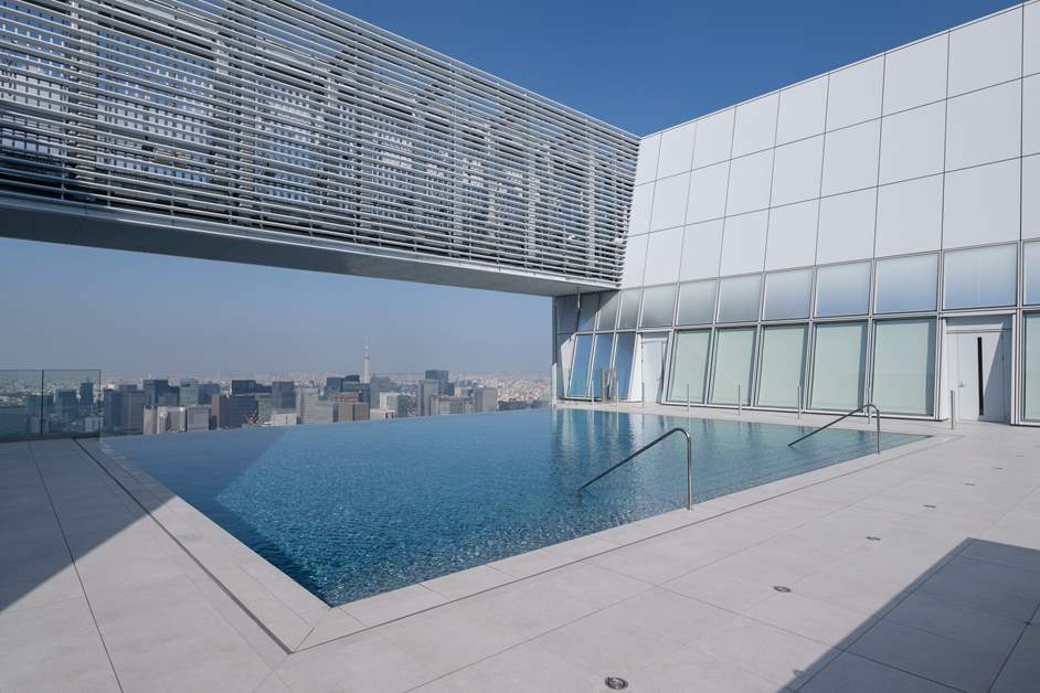The vast open-air sky garden and iconic infinity pool are truly the symbol of TOKYO NODE (swimming is currently not allowed). At the "74th NHK Kohaku Uta Gassen" broadcast on December 31st, 2023, artist Gen Hoshino performed on a stage set up over the pool.