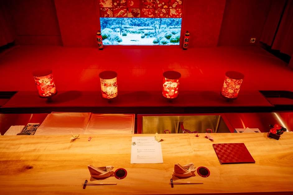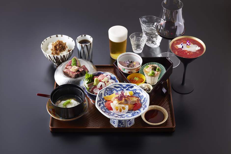At Benitsuya, guests can enjoy a course of Japanese cuisine supervised by Naoki Okumura of Gion Okumura, a renowned Kyoto restaurant. Diners can choose from the Pine, Bamboo, or Plum courses.