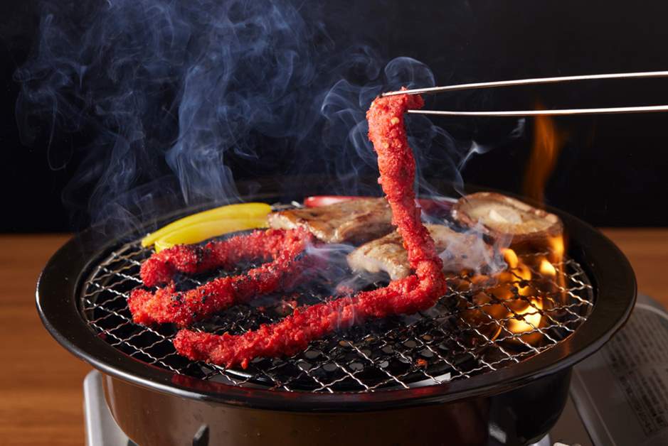 Forget the hustle and bustle of the city as you devour meat at the rooftop oasis overlooking the Shiodome buildings.