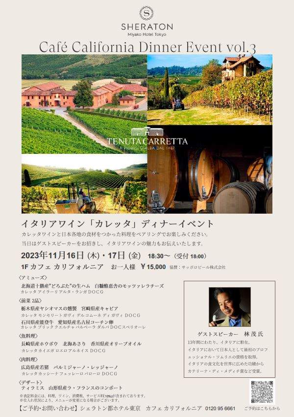 Sheraton Miyako Hotel Tokyo "Café California Dinner Event vol.3 Italian Wine "Caretta" Dinner Event"