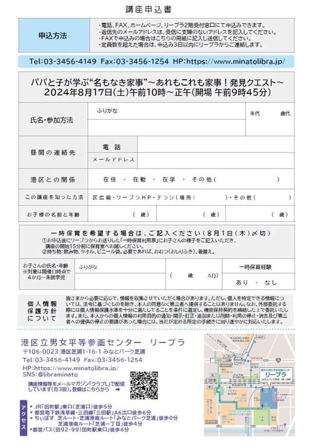 Minato City Gender Equality Center Libra "Daddy and Child Learn" Nameless Housework "~This and That Housework!