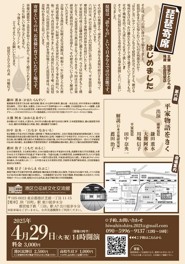 | URL | 琵琶ひとひら会(川嶋信子)HP https://www.nobukobiwa.com/ |