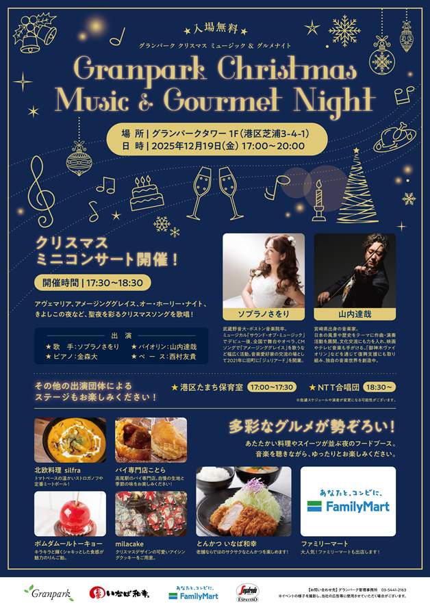 The Christmas event "Grand Park Christmas Music & Gourmet Night" will be held from 17:00 on Friday, December 19th.