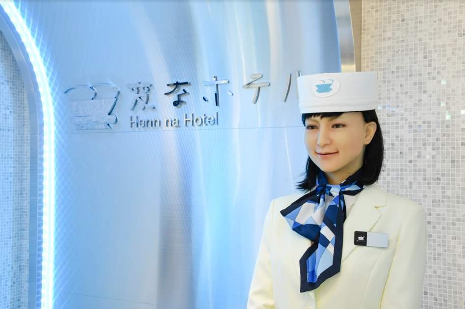 At The Strange Hotel Tokyo Hamamatsucho, state-of-the-art human-type robots welcome guests.