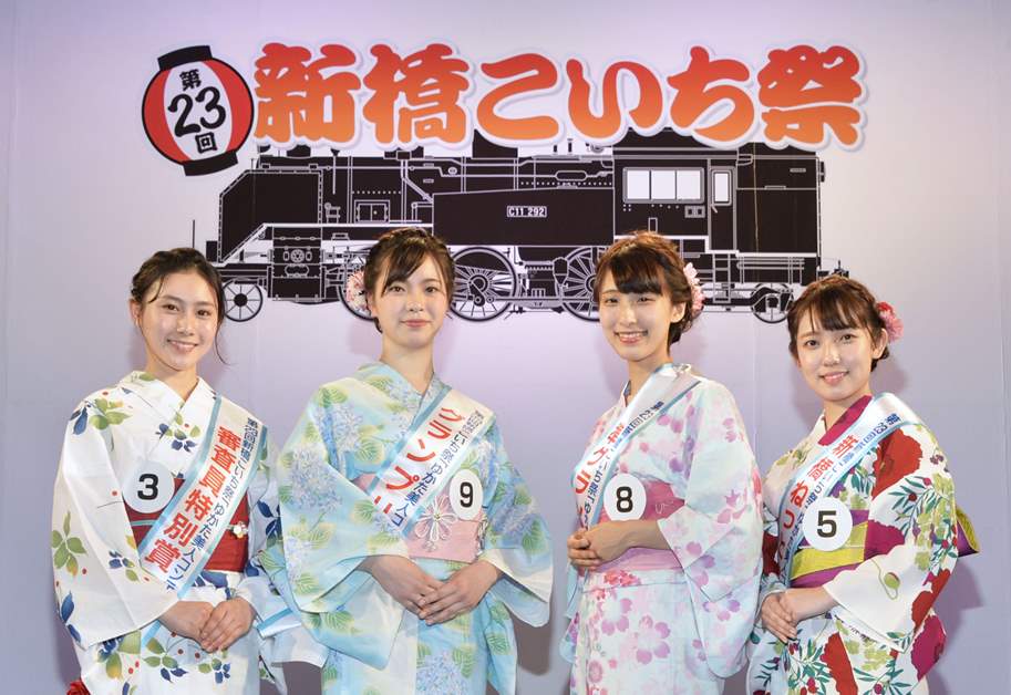 こいち祭のもう一つのメインが「ゆかた美人コンテスト」。「ゆかたが似合うこと」、「自分なりに着こなしていること」、「新橋に愛着を持っていただける方」などを審査基準に、予選を通過した涼しげなゆかた美人10名が特設ステージに並びます。着こなしの披露などの最終審査によってグランプリを決定!特設ステージではそのほかにも熱気あふれるコンサートやダンスなど様々なプログラムが開催されます。新橋に集うだれもが楽しめる、とても気さくな街に根付くお祭りです。