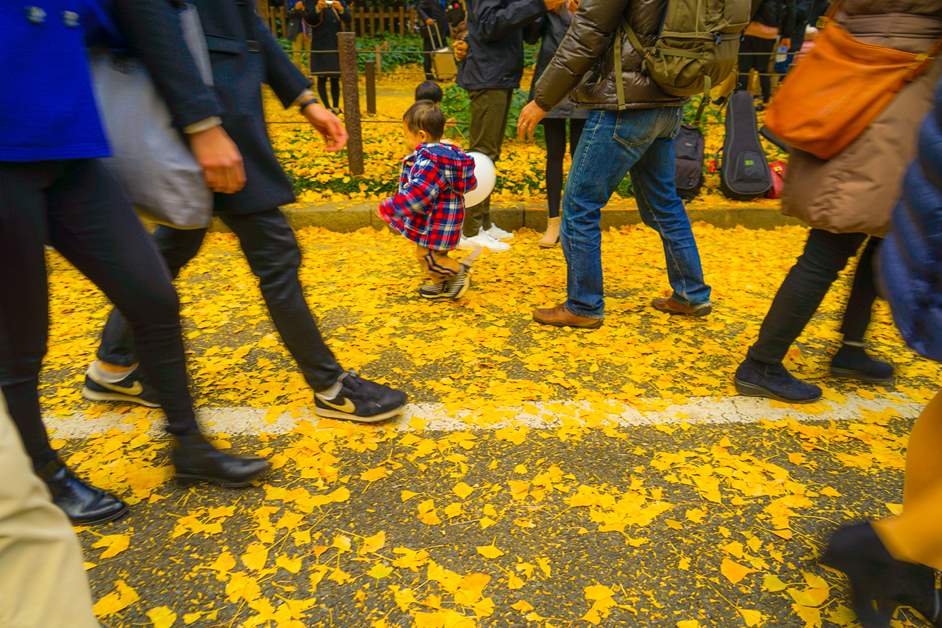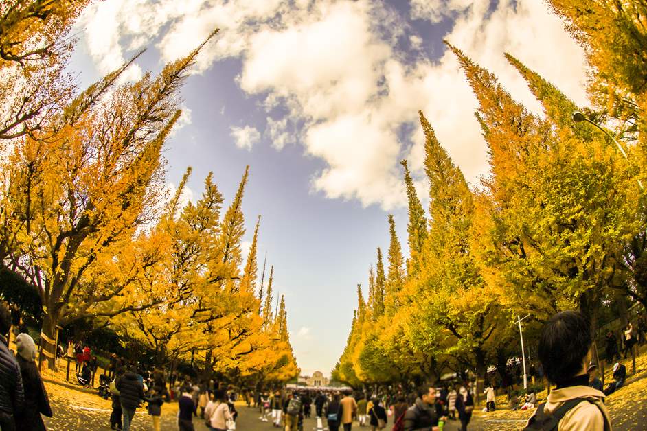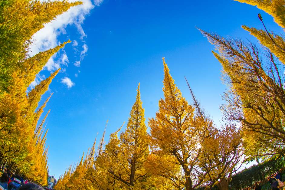 真っ黄色に染まるイチョウ並木を初めて見た人は、思わず歓声を上げてしまうほど。シーズン中は、多くの人々がこの並木道に足を運び、沢山の人でにぎわいます。