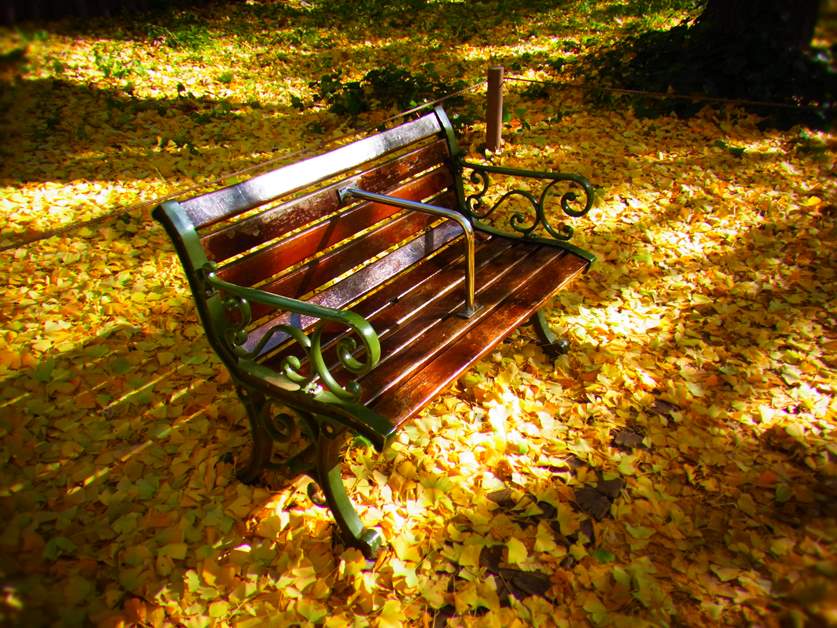 青山通り沿いには木々の下にベンチもあるので、のんびりと座って紅葉を見るのもおすすめです。