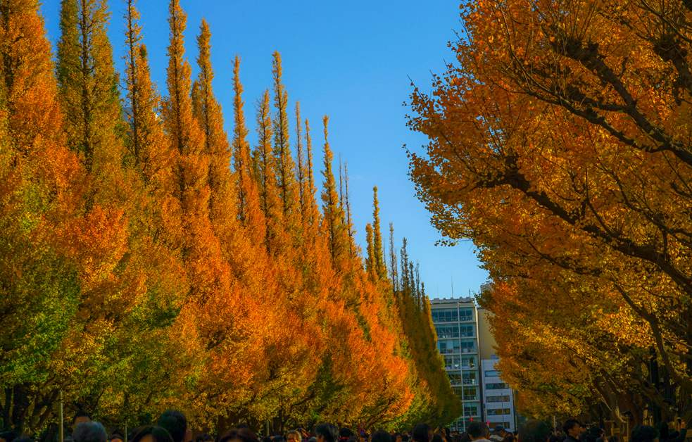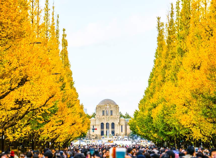 神宮外苑イチョウ並木– 146本のイチョウ並木が作る黄金のトンネルと絨毯!港区青山で秋一色を堪能