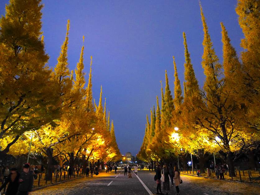 彩られた並木道を歩くだけでも、ワクワクしてきます。例年の見頃は11月下旬から12月中旬まで。
