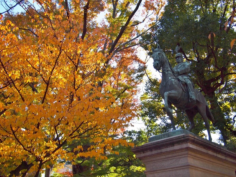 公園とも縁の深い、有栖川宮熾仁(たるひと)親王の銅像も紅葉に映え、写真を撮影しに来る人がこの時期は特にたくさん訪れます。