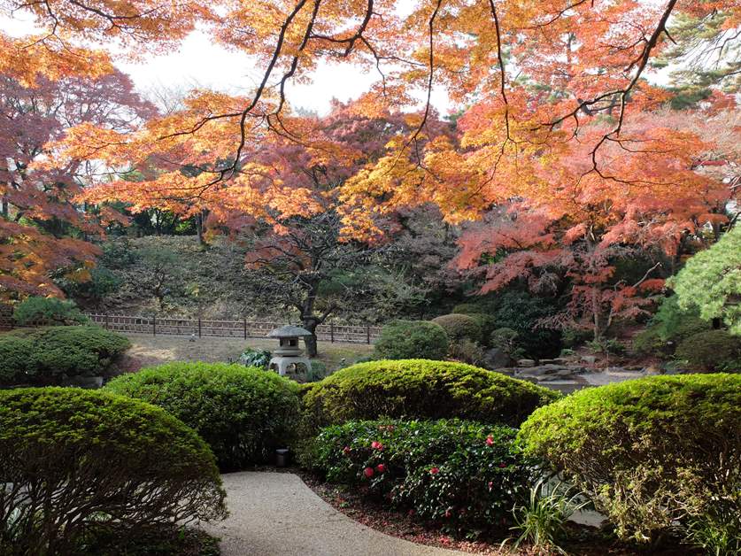 例年の見頃は11月下旬~12月上旬です。庭園内にはモミジ、カエデが多く、これらが秋に一気に紅葉を迎えます。