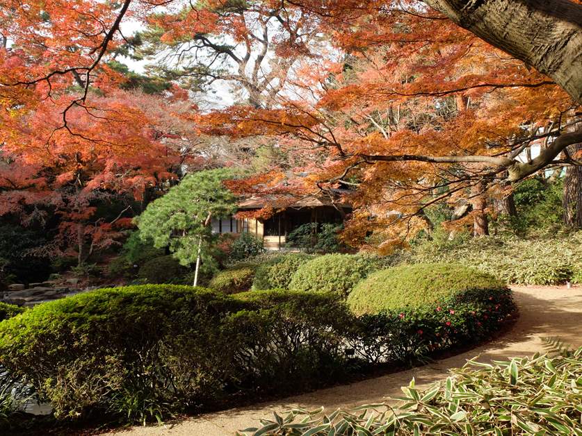 邸宅とはうって変わって、日本庭園は本館と同様に重要文化財指定を受けている茶室とともに、日本的な情緒たっぷり。秋に彩られる時期の庭園はいっそう美しく、外国人の方にも実は穴場の人気スポットとなっています。