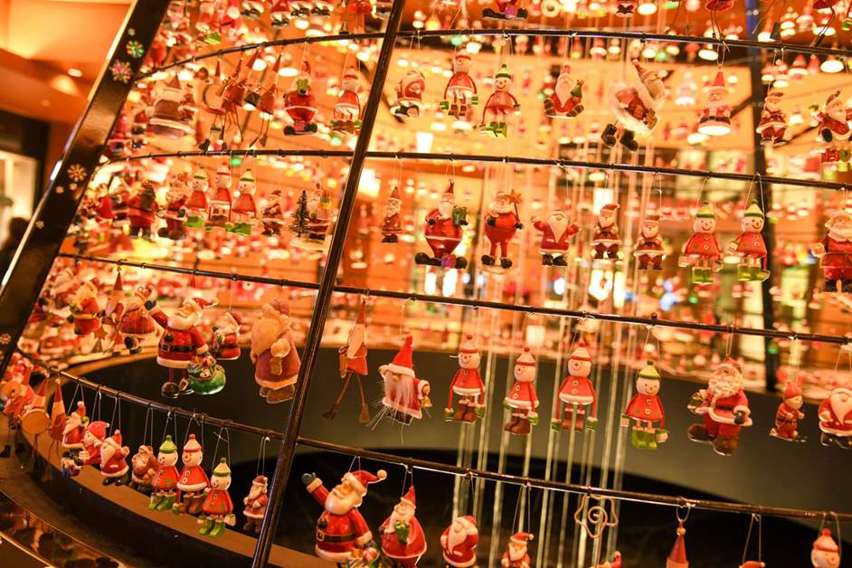 一方で館内の注目ポイントは、吹き抜けの大空間にある「サンタツリー」です。高さ4mのツリーには約1800体ものサンタクロースのオーナメントがずらり。サンタはツリーの中だけに留まらず、館内やガーデンにも12組の気まぐれサンタが抜け出し、“隠れサンタ”探しもお楽しみのひとつになっています。
