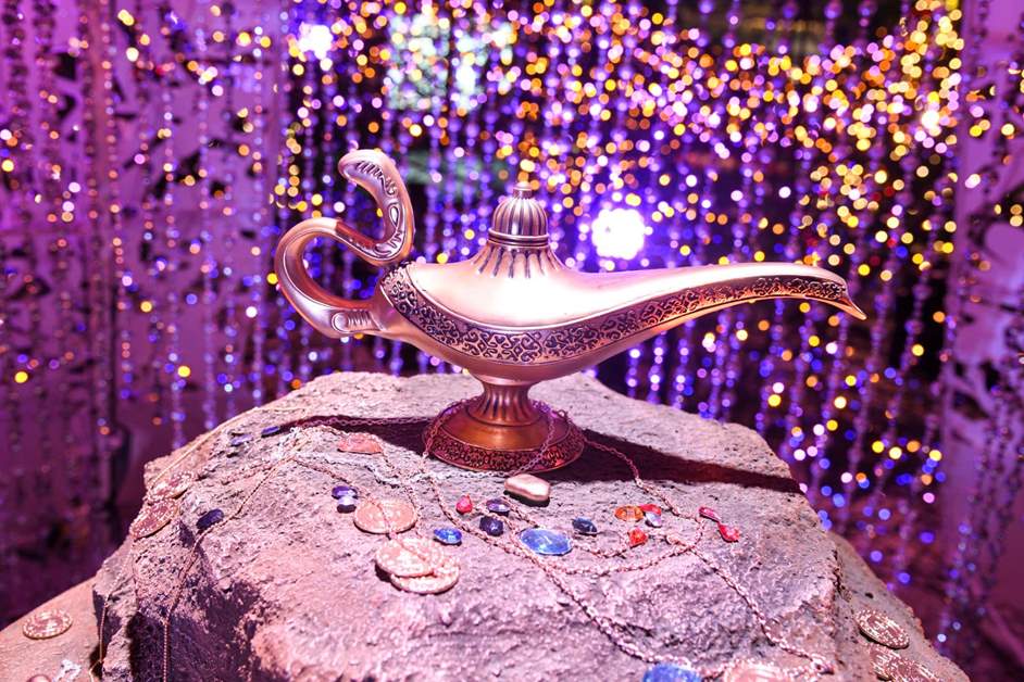 名作コンテンツとのコラボレーション企画も人気の秘訣。2019年はディズニー映画『アラジン』とコラボし、アラビアンカラーのイルミネーションで魔法の夜を演出します。そのほか、同作の名曲とともに送るプログラムショー(22:00まで15分に1度)のほか、魔法のじゅうたんに乗って撮影が楽しめるフォトロケーションやスタンプラリーを実施します。外国語の原曲 をショー楽曲に使用しているため、外国人の方からの人気も高いそう。