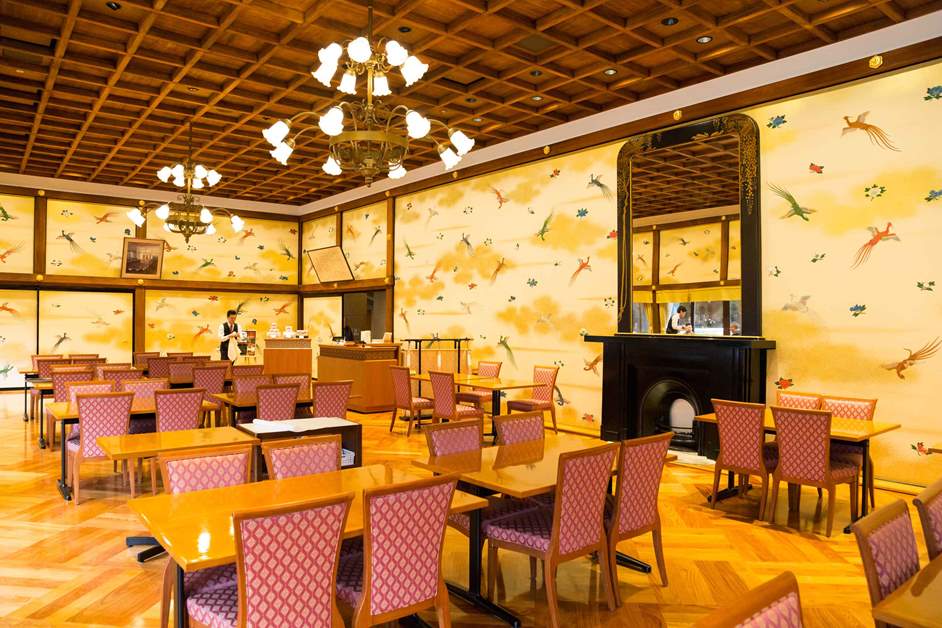 赤坂仮皇居御会食所だった頃には大日本帝国憲法草案審議の御前会議がここで開かれ、三大節賜宴や外国皇族を招いた晩餐会の会場にもなりました。現在の明治記念館本館にある「金鶏」はその高貴な歴史を物語る場であり、今は宴会場のほか、ラウンジとしても使用されています。