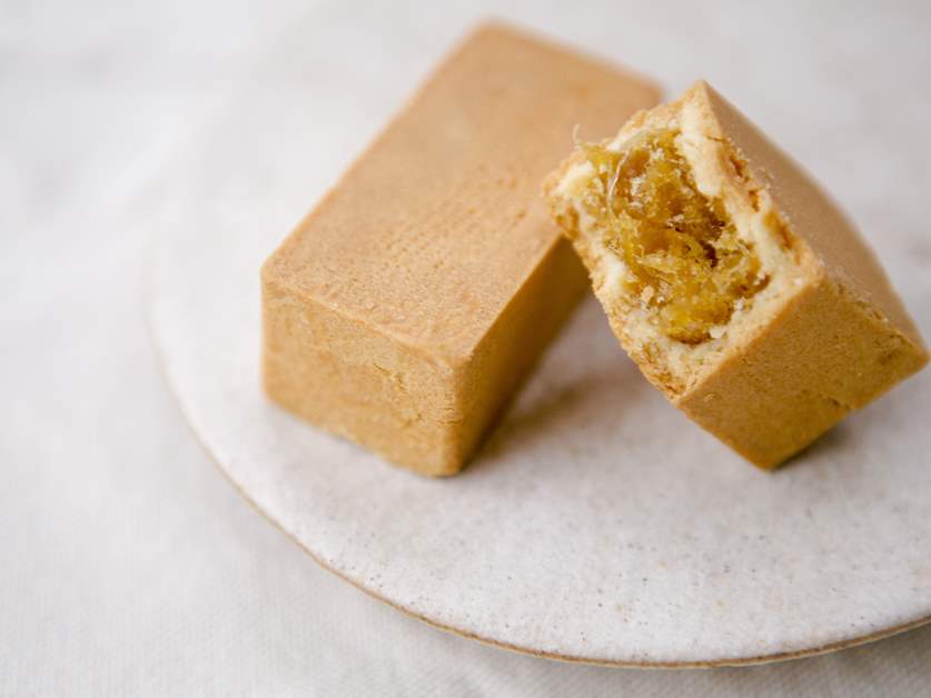 台湾から直輸入で本場そのままの味が楽しめるサニーヒルズのパイナップルケーキは香料・添加物不使用にこだわり、クッキー生地にはニュージーランド産グラスフェッドバターを使用。ジャムには一年じゅう強い日光が照り付ける台湾中部の八卦山の畑で育てられた開英2号・3号というパイナップルが使われ、その甘酸っぱい味わいだけでなく、果実の持つサクサクとした繊維感もしっかり楽しむことができます。