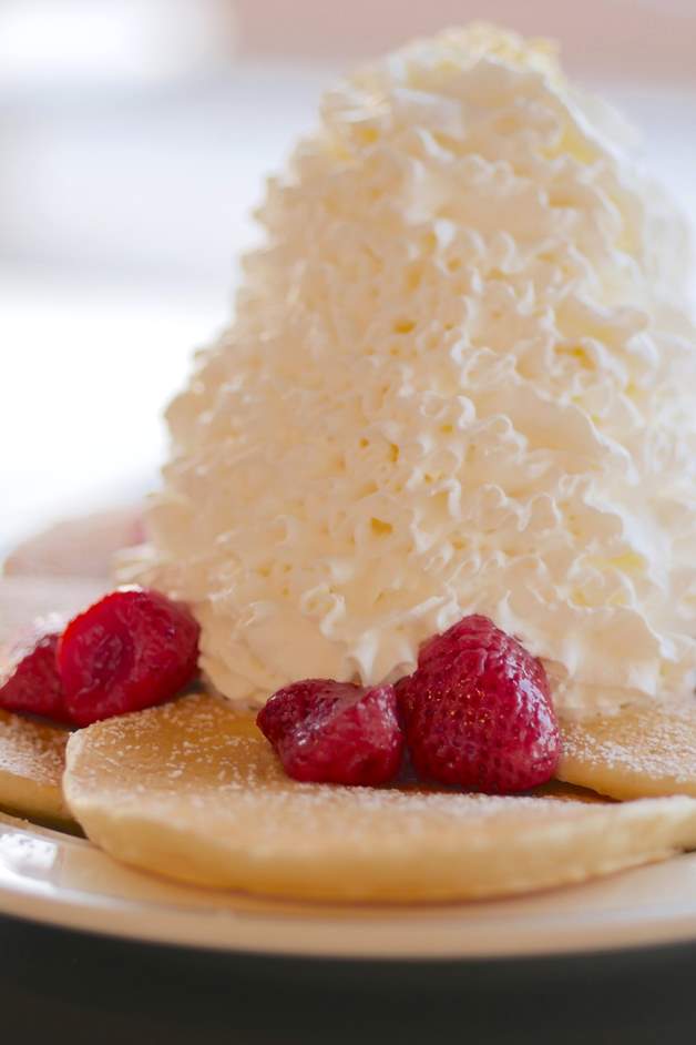たくさんホイップクリームのパンケーキに感激「Eggs 'n Things」