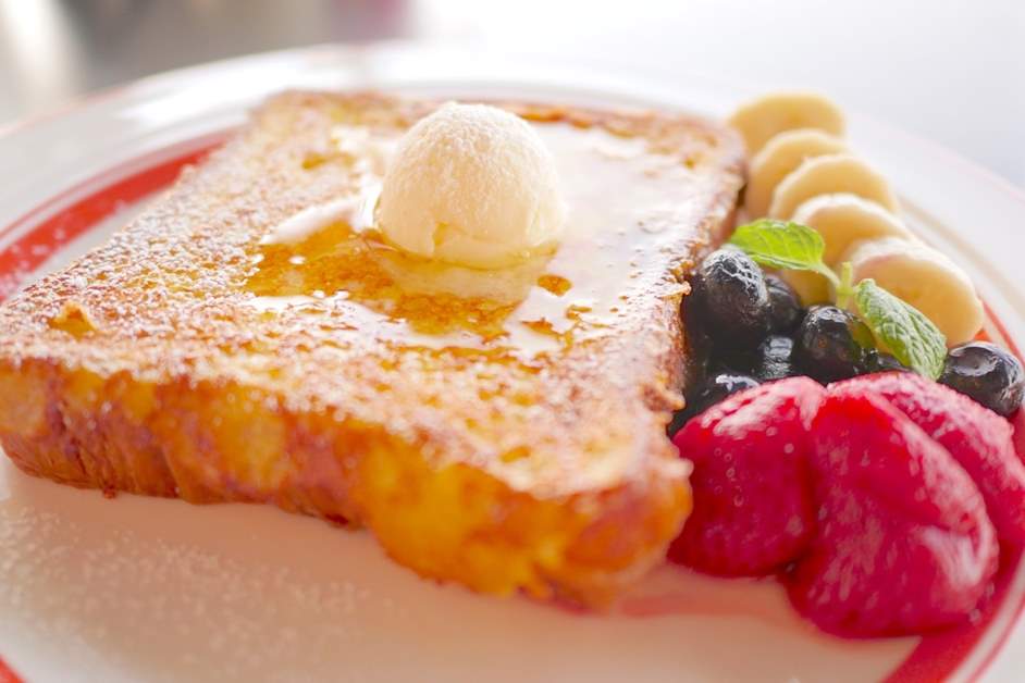 “All Day Breakfast”というコンセプトで、朝から夜まで楽しめるボリューム感のあるブレックファーストメニューを提供しています。中にも、ホイップクリームがたくさん乗ったパンケーキが特に人気です。
