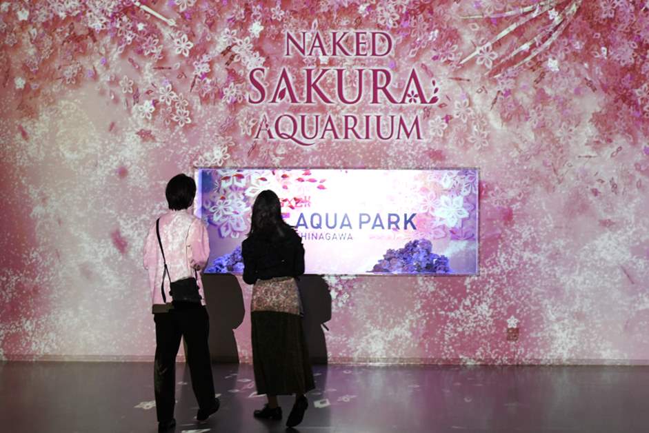 1階では、取材時には“海の世界のお花見”をイメージした「NAKED SAKURA AQUARIUM(ネイキッド サクラアクアリウム)」というイベントが行われていました。