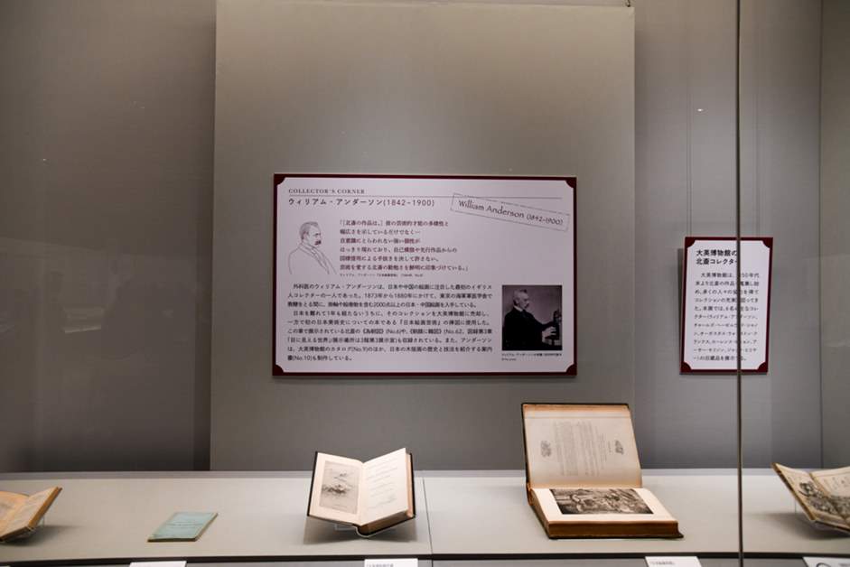 大英博物館が世界有数の北斎コレクションを築き上げた背景には、開国後の日本に来日もしくは興味を持ち、北斎作品を収集した6名の英国人コレクターの存在がありました。彼らの活躍に着目しているのも本展の特徴のひとつ。場内にはそれぞれの人物を紹介するコーナーが各所に設けられ、北斎あるいは日本美術に関する著作物なども見ることができます。