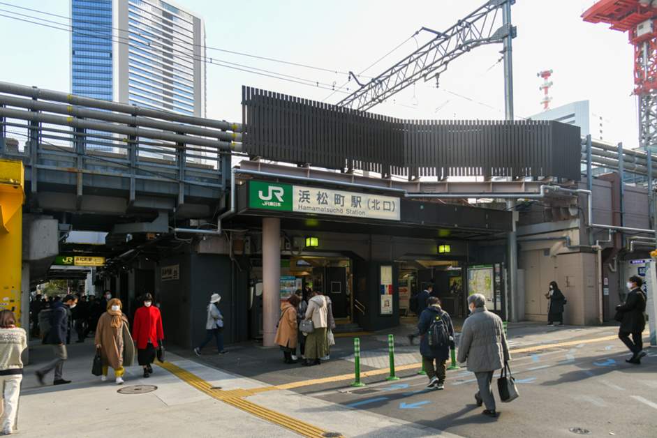 国際線のフライトが到着する羽田空港第3ターミナルから14分。空港を出たモノレールは、高層ビルの間を通って終点の浜松町駅に到着します。ビルの5階にあるプラットホームから階段を下った3階が改札口。そのままJRに乗り換えることもできますが、今回はここで改札を出て、芝・大門エリアの散策へ。ここから東京タワーまでは歩いて20分ほどですが、いろいろ寄り道しながらゆっくりゴールまで向かっていきたいと思います。