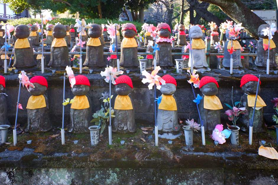 一方で、西側の一角では「千躰子育地蔵菩薩」の独特な景観を見ることができます。檀家の方々が子や孫の健やかな成長を願って立てた無数の地蔵菩薩は、一体一体が違った服装をしていて、それぞれがほっこりするかわいらしさ。こちらも写真に残したくなるポイントです。