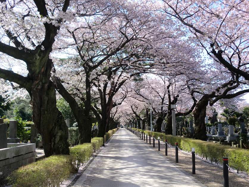 青山霊園は、300本以上の桜がある名所としても有名。青山から西麻布にかけてのびる一本道には、両側に桜の並木道があり、満開の頃には桜のアーチのような美しさを見せます。園内の至るところに桜はありますが、写真撮影するなら、ここがおすすめです。桜の名所ではありますが、レジャーシートを広げての飲食はNG。都会の喧騒を忘れて、静かに散策しながら桜を楽しむことにしましょう。