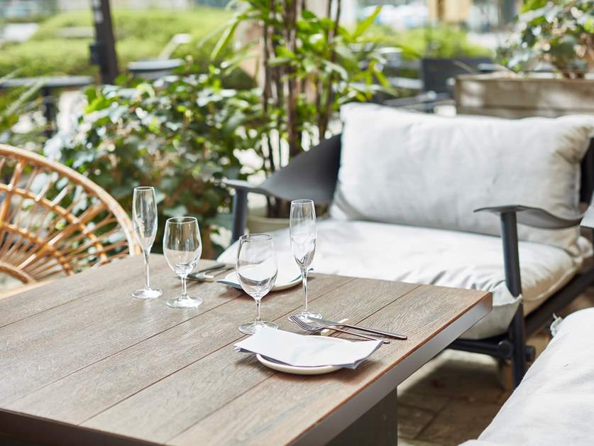 屋外ラウンジでは「ホテル ザ・リッツ・カールトン東京」の華やかなメニューやオリジナルカクテルが楽しめる