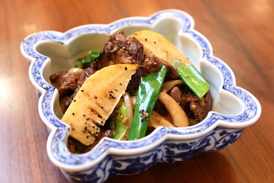 「中国料理 ゴールデンタイガー」の筍と牛肉の黒胡椒炒め(500円・税込)
