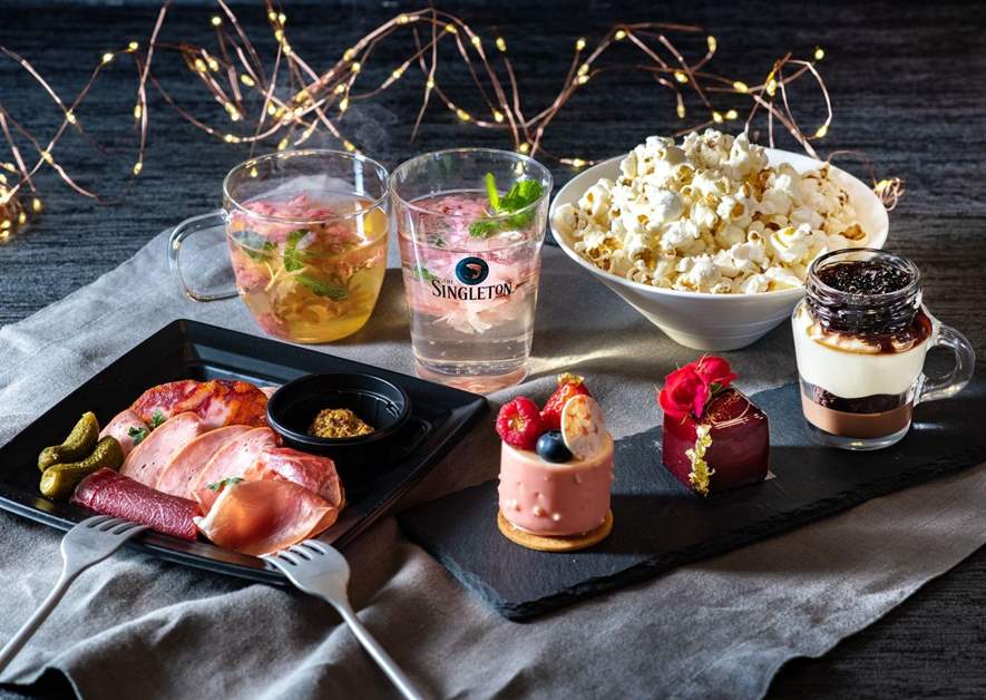 スペシャルシートでの席料に含まれるラウンジセット(7,000円・税込)。ドリンク2杯とおつまみ2品、スイーツ3種のセット