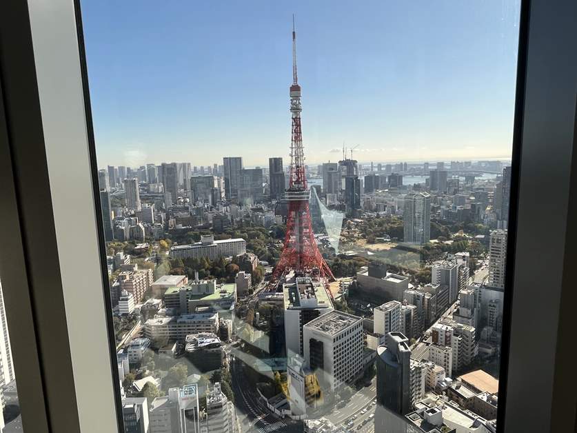 麻布台ヒルズのランドマークは高さ約330mの森JPタワー。下から見上げてみたら、その迫力に圧倒されました。