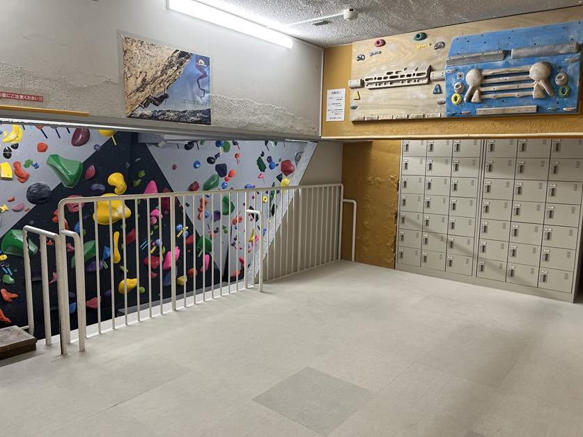 地下の店舗ですが、壁の高さは4mもあり、広々としているのがジムの特徴の一つ。横に行くにしたがって、様々な角度の壁に挑戦することができます。また、初心者から上級者まで、すべての方が楽しめるコースを用意。月に1回は全面的にホールド(壁の突起物)を取り替えてコースを変更するため、常連になっても飽きることなく通い続けることができます。