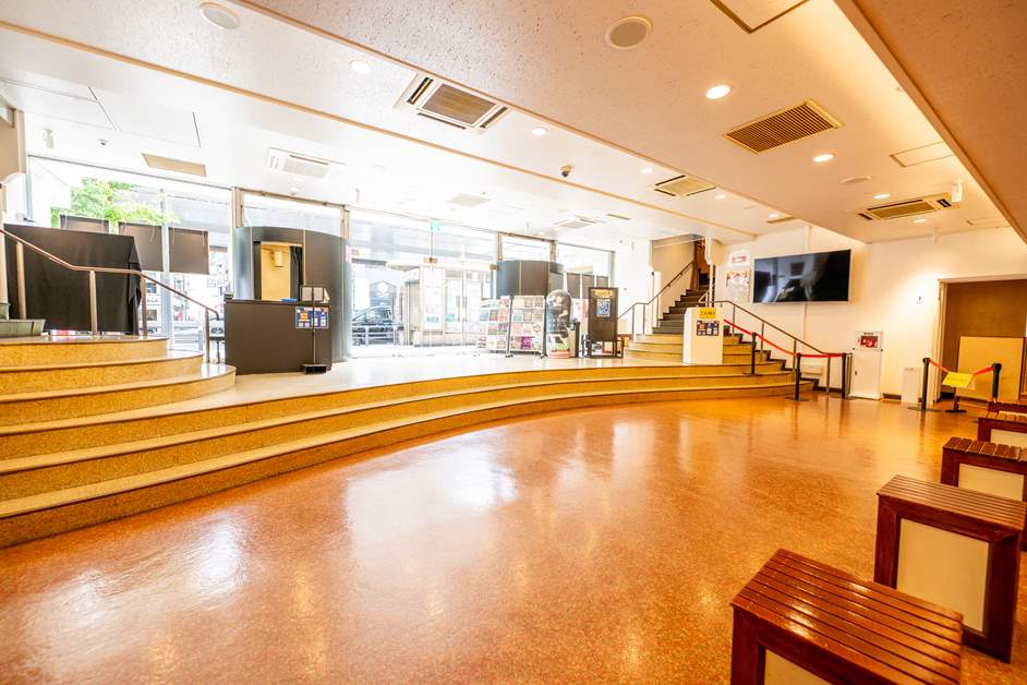 劇場のエントランスロビーは広々としており、木目調のベンチなど、座れるスペースも完備。