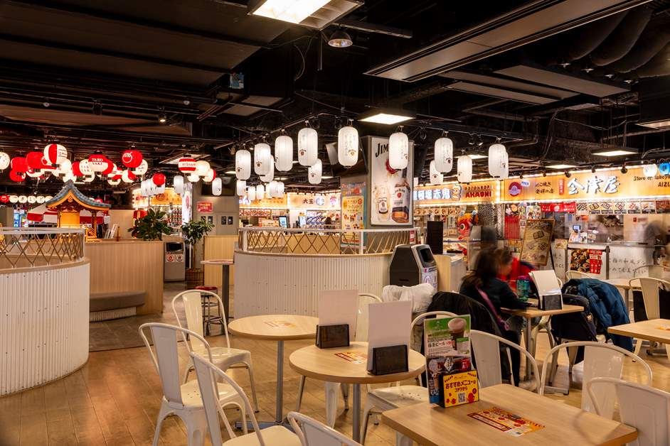ゆりかもめのお台場海浜公園駅より徒歩2分。デックス東京ビーチのシーサイドモール4階に足を踏み入れると、食欲をそそる香ばしい香りが漂ってきました。「お台場たこ焼きミュージアム」は、フードコートスタイルになっており、好きなお店のメニューを好きな席でいただくことができます。