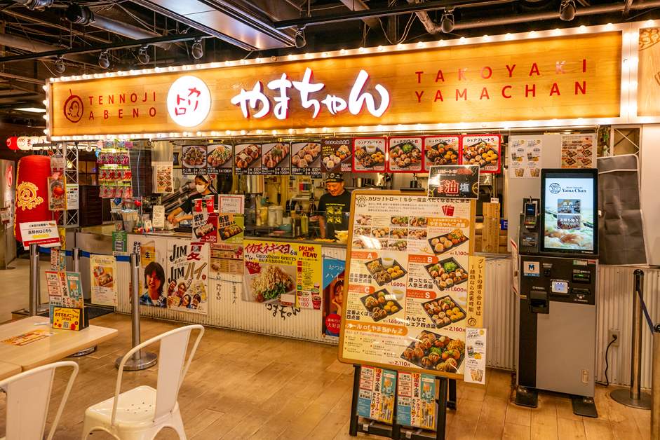 最初は大阪・阿倍野区で1988年(昭和63年)に創業した「天王寺アベノタコヤキやまちゃん」。本店は天王寺駅すぐの場所にあり、地元の人や観光客で常に行列が絶えない超人気店として知られています。