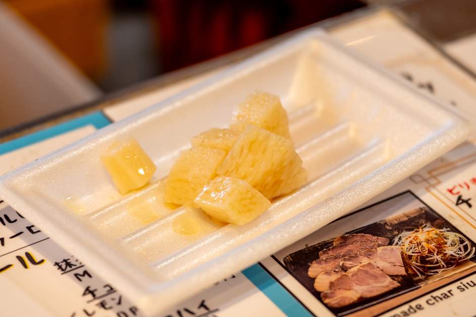 「芋たこ焼き」は見た目はスタンダードなきつね色のたこ焼きですが、一口食べると、“外カリッ、中トロッ”に加えて、普通のたこ焼きにはない“サクッ”という食感が楽しめます。タコはもちろん、出汁がしっかりと染み込んだ山芋が生地の中で存在感を発揮。タコのプリプリとした弾力と旨味と共に、良いアクセントになっていました。和食の繊細さと、たこ焼きの親しみやすさが融合した「芋蛸」だけでしか味わえない逸品です。