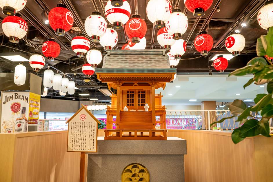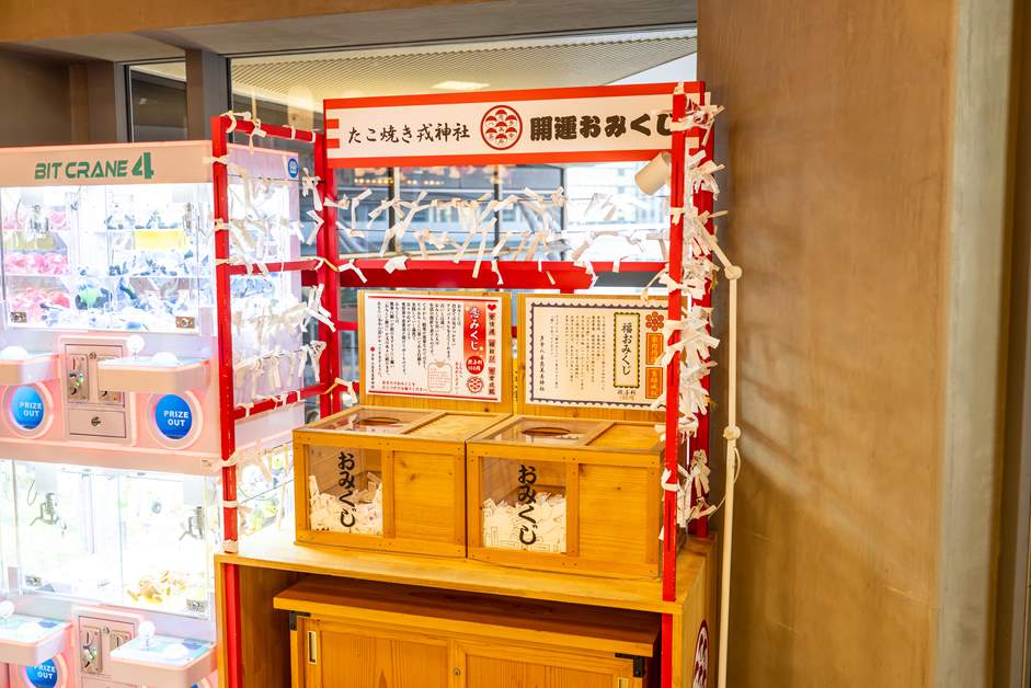 フロアの一角には「たこ焼き戎神社(神社散歩多幸八喜恵美寿)」が鎮座。商売繁盛の神様「えべっさん」として有名な大阪・今宮戎神社から、正式に分祀された由緒正しい神社で、丸いたこ焼きにあやかり、「家庭円満」や「良縁成就」のご利益もあるとか。お参りすれば、美味しい思い出と共に、“福”も持ち帰れるかもしれません。