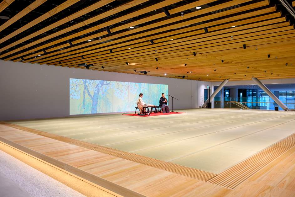 4階へ上がると、約100畳の広大な畳空間「Tatami」が現れます。ここでは、和楽器の演奏や落語、太神楽、公開生け込みなど、畳であることを活かしたイベントが行われます。