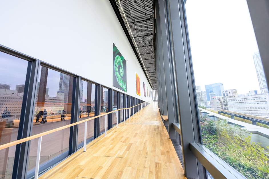 2階のエントランス入口に掲げられているのは、「MoN Takanawa: The Museum of Narratives」の文字。「MoN」には、新しい世界への入り口としての「門」という意味と、未来を生きるために必要な「問」という、二つの思いが込められているのだそうです。