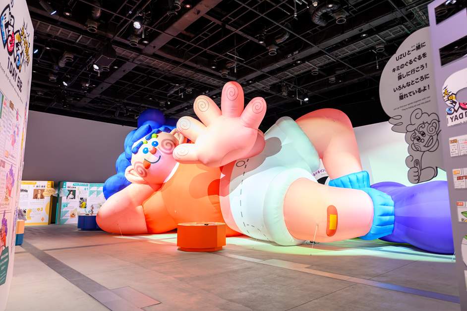 会場内には大型バルーンの「大きなUZU」が。寝転んでいるユニークなキャラクターは、ぜひ写真におさめておきたいところです。