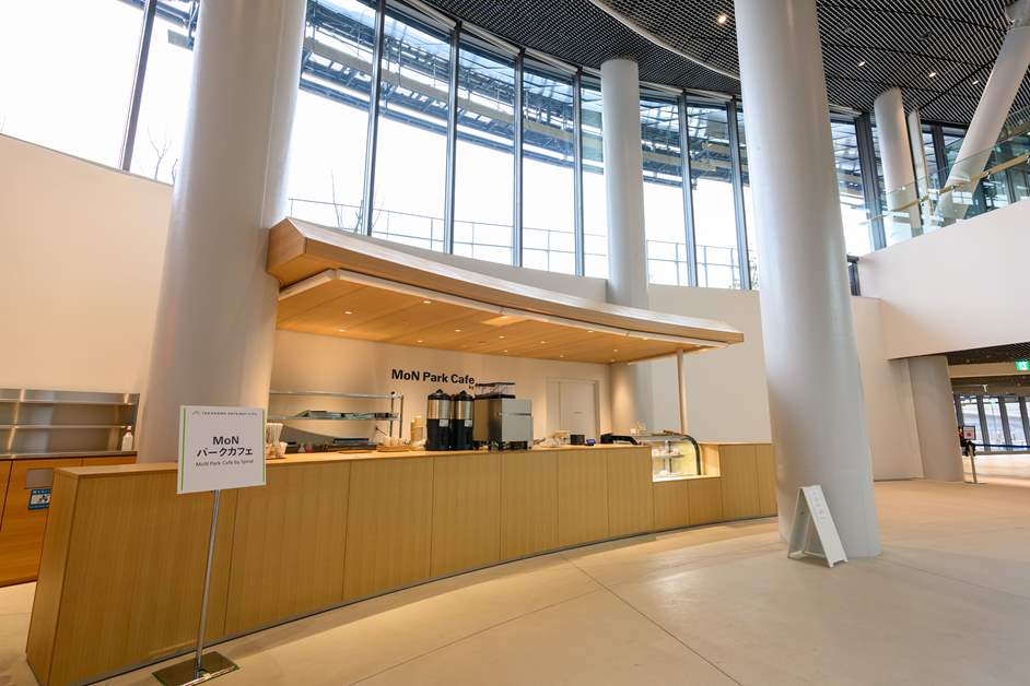 屋上から1階へ。ここでは公園に隣接した「MoNパークカフェ」が営業中。近隣に住む方や働く方が気軽に立ち寄れるテイクアウト主体のカフェとなっています。今後整備される公園からは、鉄道が海の上を走るために作られた「高輪築堤跡」が見渡せる予定だとか。