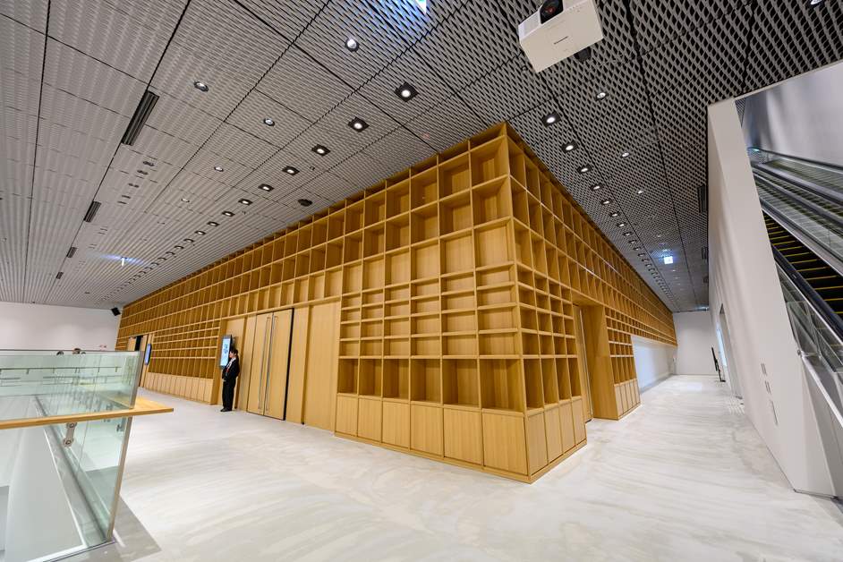 シアターには、壁一面が巨大な本棚となった「ライブラリ」も設置。開催中のプログラムやアーティストに関連する書籍、グッズなどが展示される予定です。