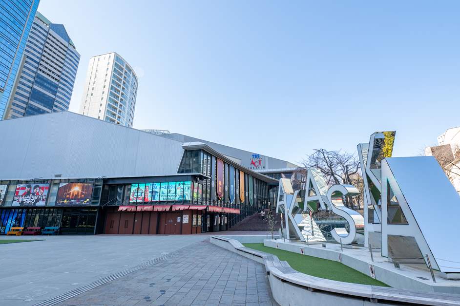 赤坂サカスは、ライブエンターテインメントの拠点でもあります。かつて多くの伝説的なライブが行われた「赤坂BLITZ」は、現在は「TBS AKASAKA BLITZ STUDIO」として、番組収録や観覧が可能なスタジオへと変貌。隣接する「TBS赤坂ACTシアター」は、2022年より舞台「ハリー・ポッターと呪いの子」の専用劇場として運営されており、劇場の外装や周辺もハリー・ポッターの世界観に統一されています。